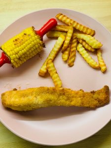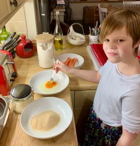 Today I made fish fingers! I dipped the fish in the flour, then the egg and then the breadcrumbs. Freddie loves fish fingers! They were so nice! πŸ˜‹