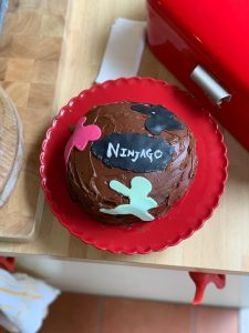 Hello! Today my brother and I made a ninja themed chocolate fudge cake. As I said in my vanilla biscuits post (click here to find out more), my brother is obsessed with ninjas at the moment. We decided to make this cake, using our new ninja cookie cutters to cut out the fondant icing.